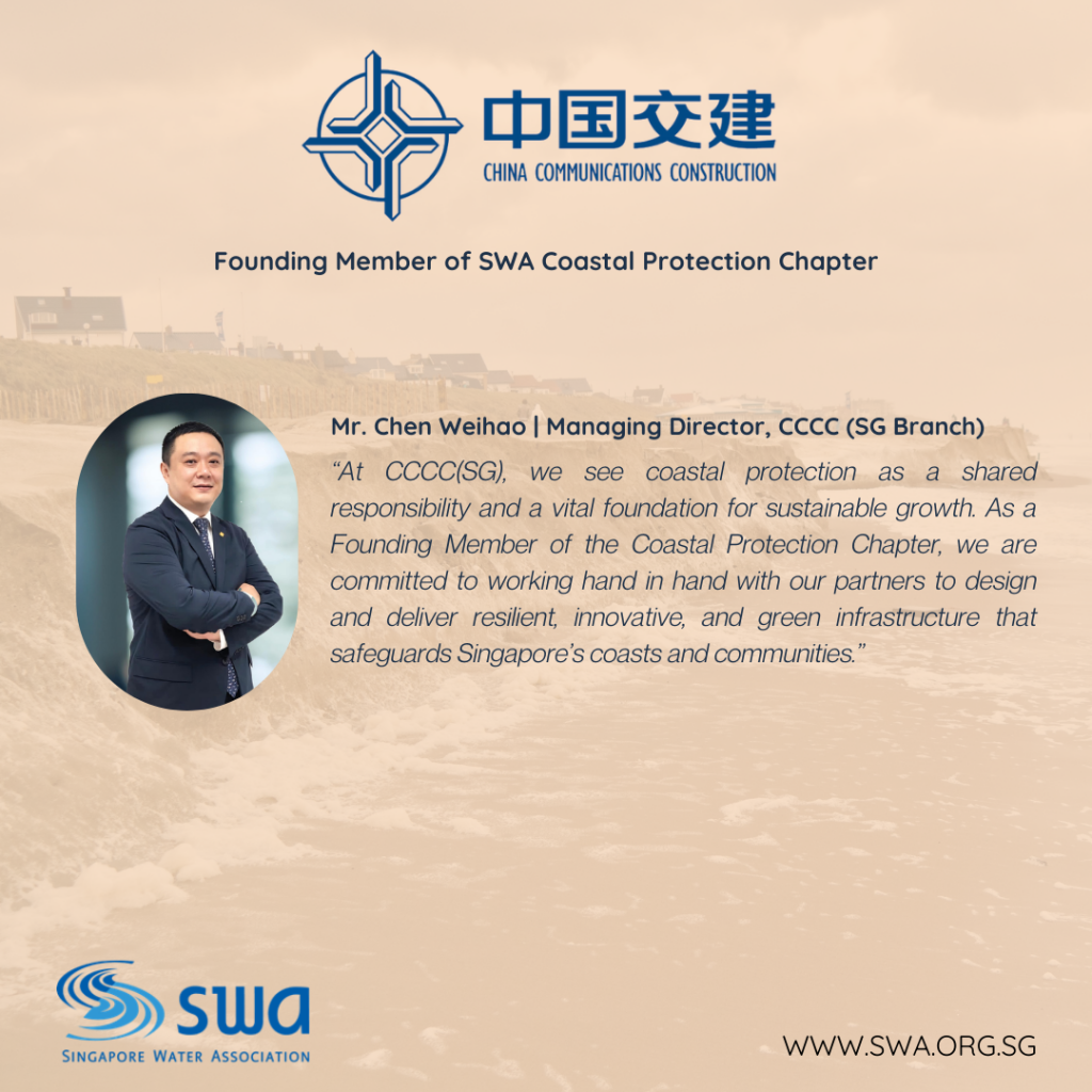 We’re excited to welcome China Communications Construction Company Limited (Singapore Branch) as a Founding Member of the Singapore Water Association (SWA) Coastal Protection Chapter — a platform uniting industry leaders to strengthen Singapore’s and the region’s resilience against rising sea levels and coastal challenges.