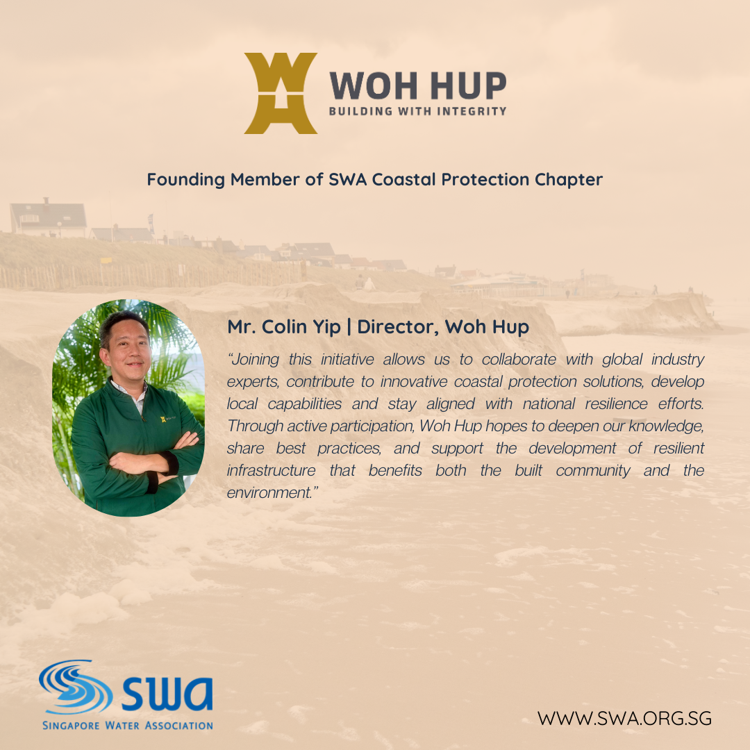 We’re excited to welcome Woh Hup as a Founding Member of the Singapore Water Association (SWA) Coastal Protection Chapter — a platform uniting industry leaders to strengthen Singapore’s and the region’s resilience against rising sea levels and coastal challenges.
