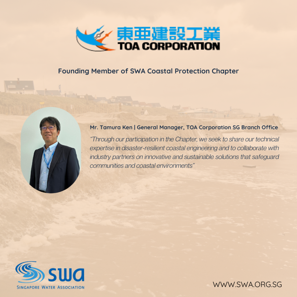 We’re excited to welcome TOA Corporation SG Branch Office as a Founding Member of the Singapore Water Association (SWA) Coastal Protection Chapter — a platform uniting industry leaders to strengthen Singapore’s and the region’s resilience against rising sea levels and coastal challenges.